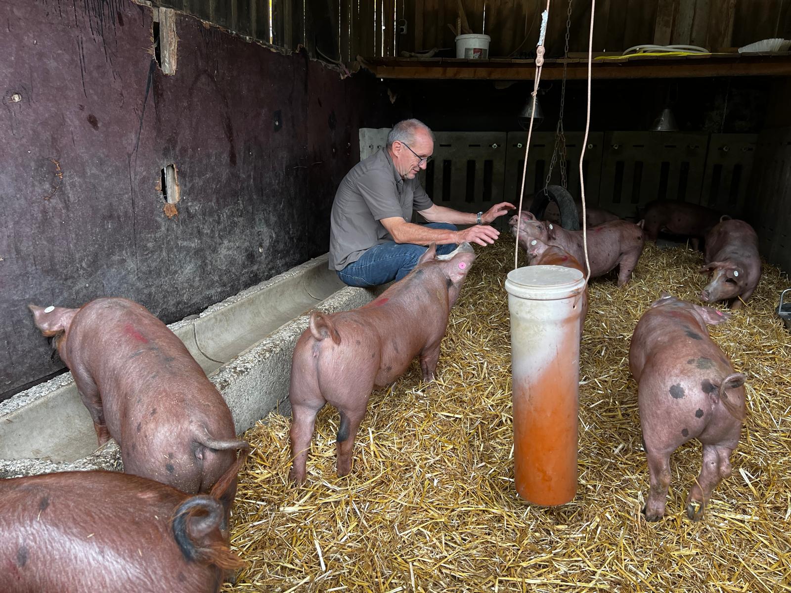 Als Tierarzt weiß ich, was Tieren guttut. Deshalb biete ich unseren Schweinen viel Auslauf, abwechslungsreiche Beschäftigung und hochwertiges Futter.