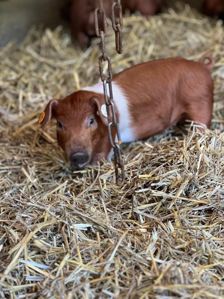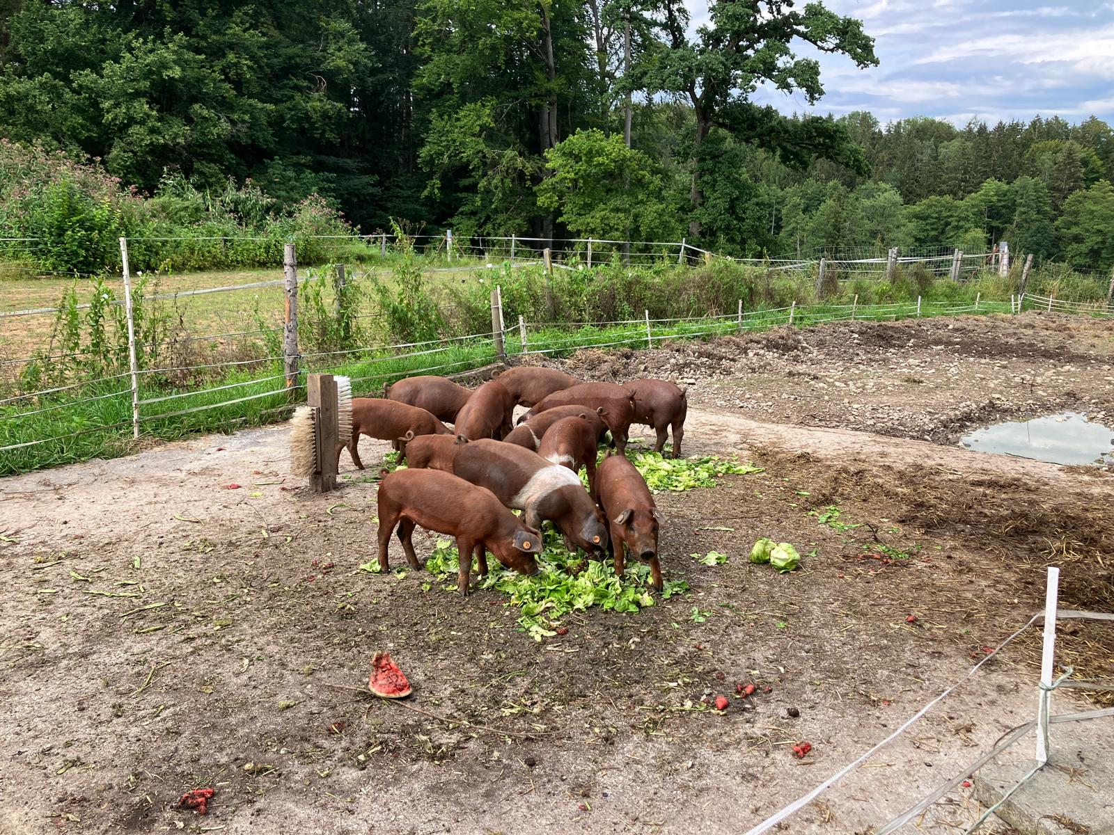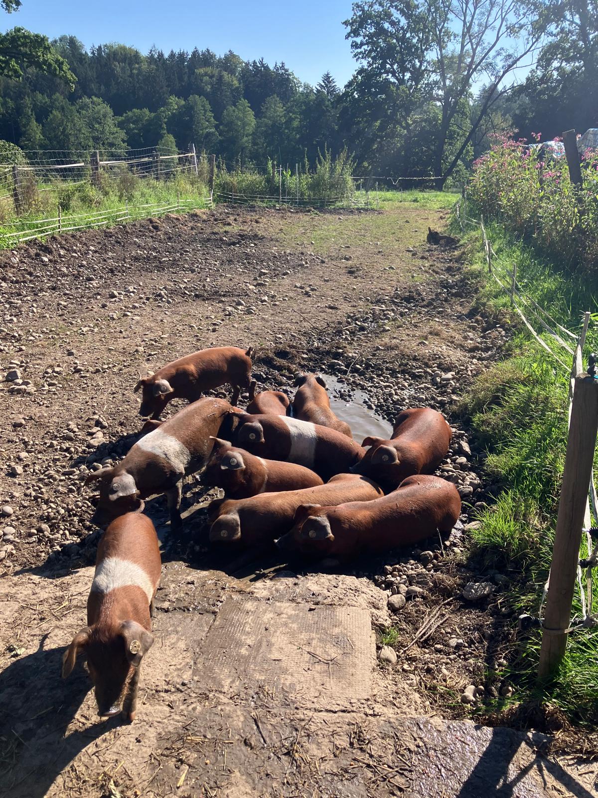 Von den ersten Wochen an haben unsere Schweine Auslauf.